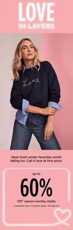 Shop in store and get up to 60% off winter styles.